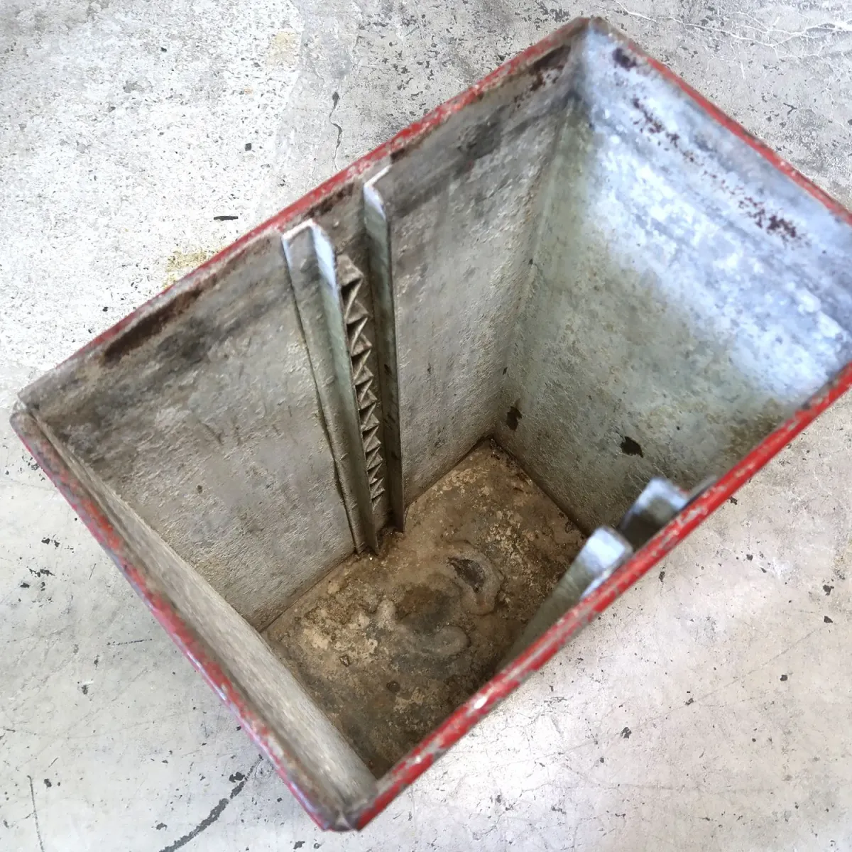 質実剛健な長方形の無骨なデザイン、時を経たシャビーな風合いが最高にCOOLです。上部のタグが良い雰囲気、剥がれたラベルもビンテージらしい貫禄のオーラがありますね。 重厚な作りはズッシリと重みがありますが、キャスターが付いているので移動も楽々です。