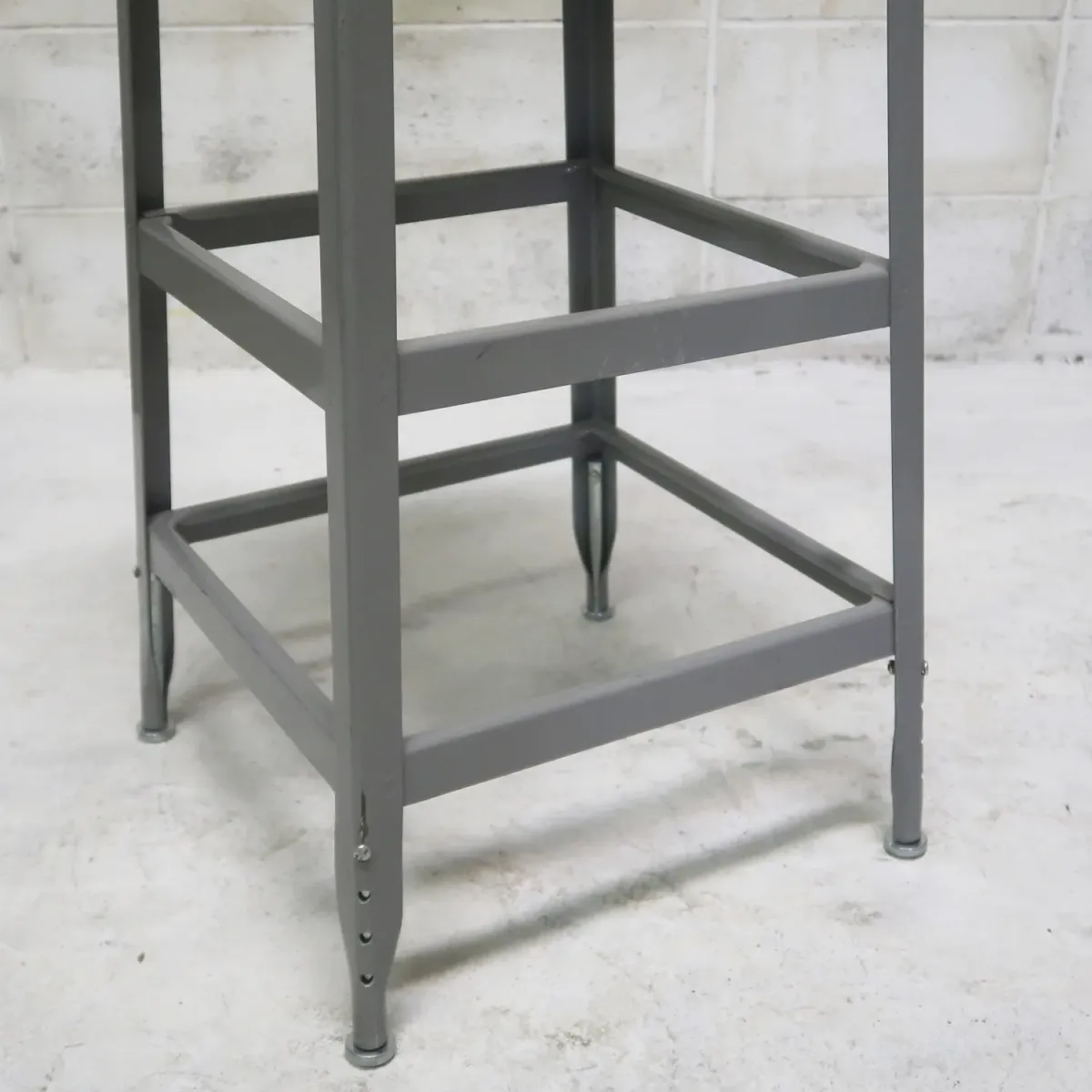 こちらは一目でLYONと分かる最もスタンダードな形のスツール。インダストリアルで無骨なメタルの雰囲気と重厚な作り、マットなグレーカラーが良いですね。 座面部分は圧縮ボードのような素材になっており、脚部分で4段階の高さ調節が可能です。 (座面高:770~845mm)