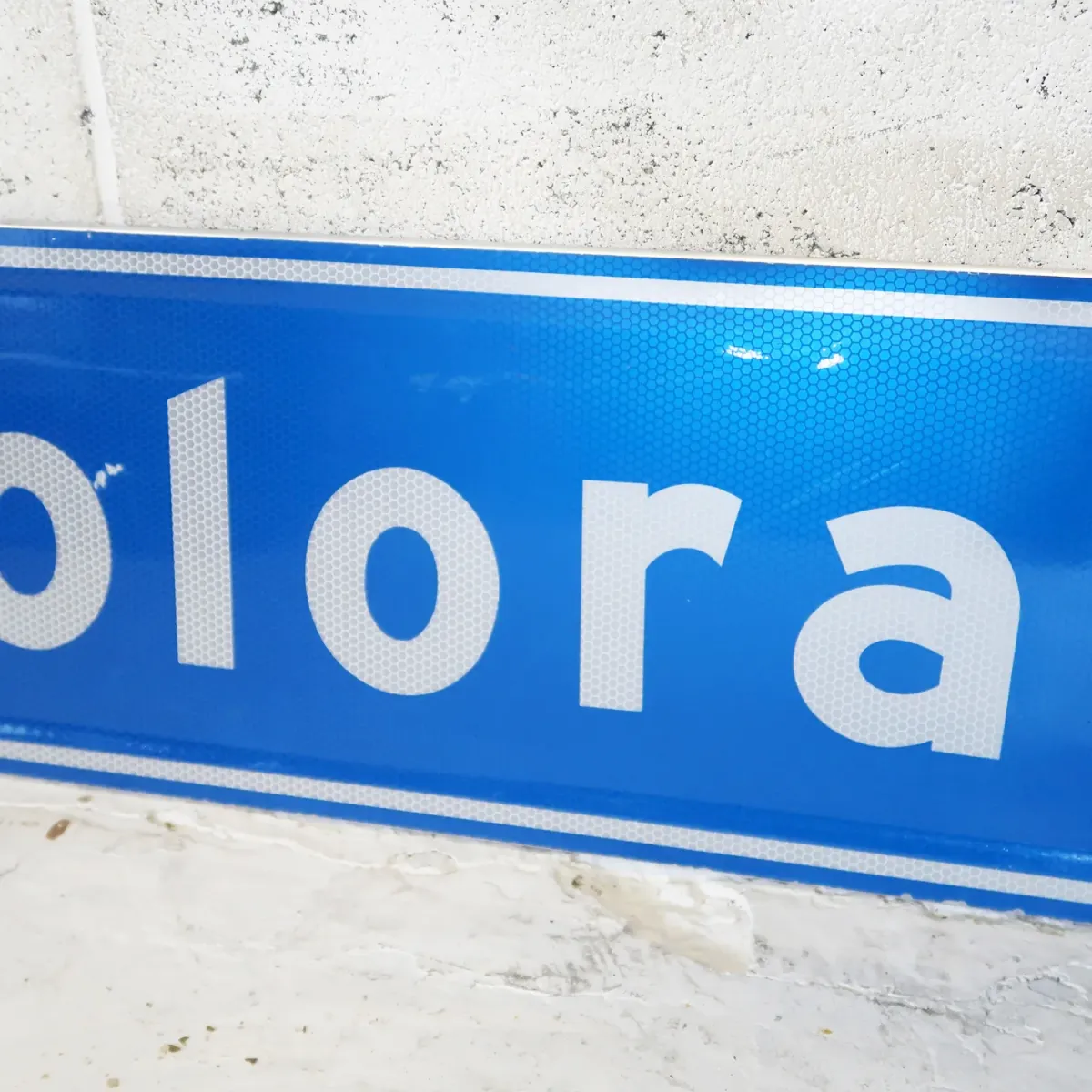 ブルーベースにホワイトレター、シンプルなフォントデザインながら雰囲気と存在感があります。通りの名を表すサインで、実際にアメリカのロードサイドで使われていた物です。両面仕様なのも嬉しいポイント。 適度なメタルのヤレ具合、実用されてきたリアルな風合いが世界に一つだけの存在感で惹かれますね。 表面は反射仕様になっているので、光が当たるとキラリと反射し目を引きます。