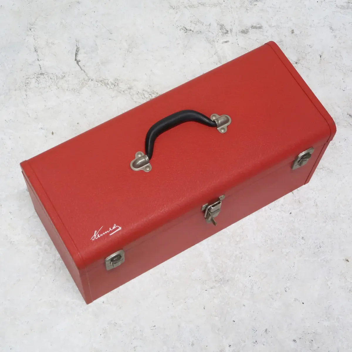 Kennedy Manufacturing Co. は創業1911年、アメリカの有名老舗メーカー。 かなり目を引くレッドカラー、重厚感のあるメタルの素材感がカッコ良いですね。 ハンドルのフォルムや今には無い無骨で男らしいスクエアデザインの作りが魅力的。 南京錠があれば施錠も可能です。