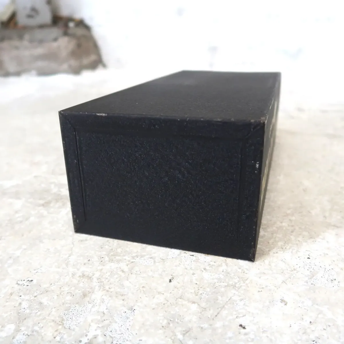 元々はラジオパーツのストックに使用されていたキャビネット。 エッジの効いたスクエアデザイン、COOLなブラックペイントにフロントやサイドに入ったOLDなロゴが魅力的。コントラストの効いたカラーリングやヤレた表情のメタルボディも魅力的ですね。 奥行きがしっかりあり、収納力抜群です。