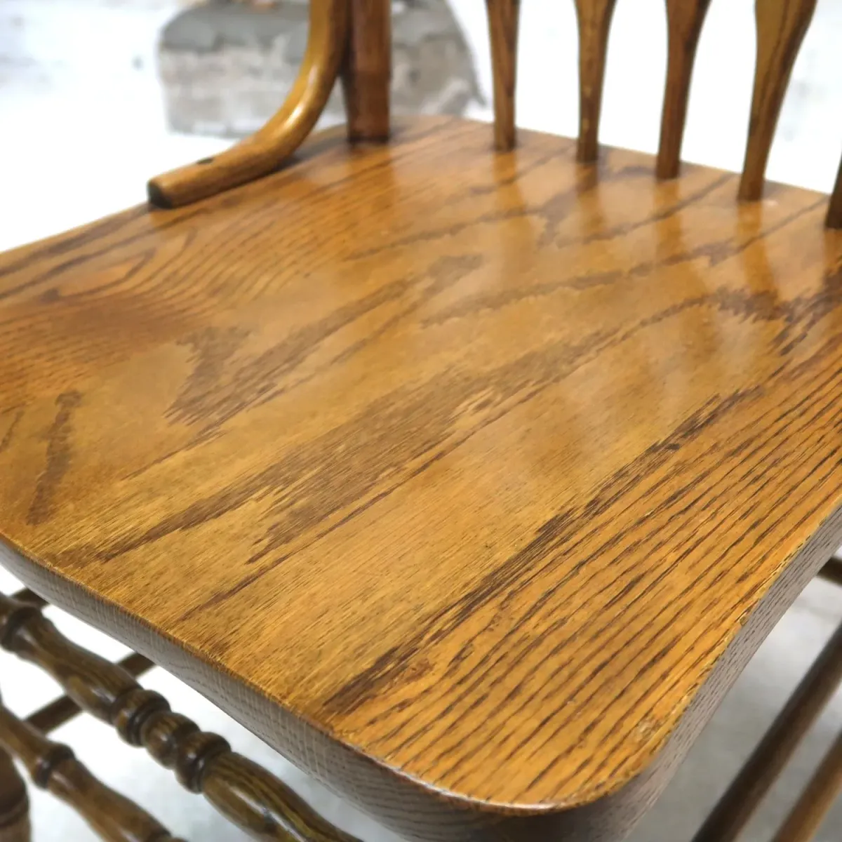 高級感のある肉厚なウッドを使った丁寧な作り、曲線と直線が入り交じった美しく繊細なクラシックスタイル。拘ってしっかりと作られているのが分かります。 目を引く背もたれのフェザーデザイン、美しい木目や長い歴史を感じるウッドの温かな風合いも魅力的。 そこにあるだけで絵になるアンティークならではの存在感と貫禄があるチェアです。