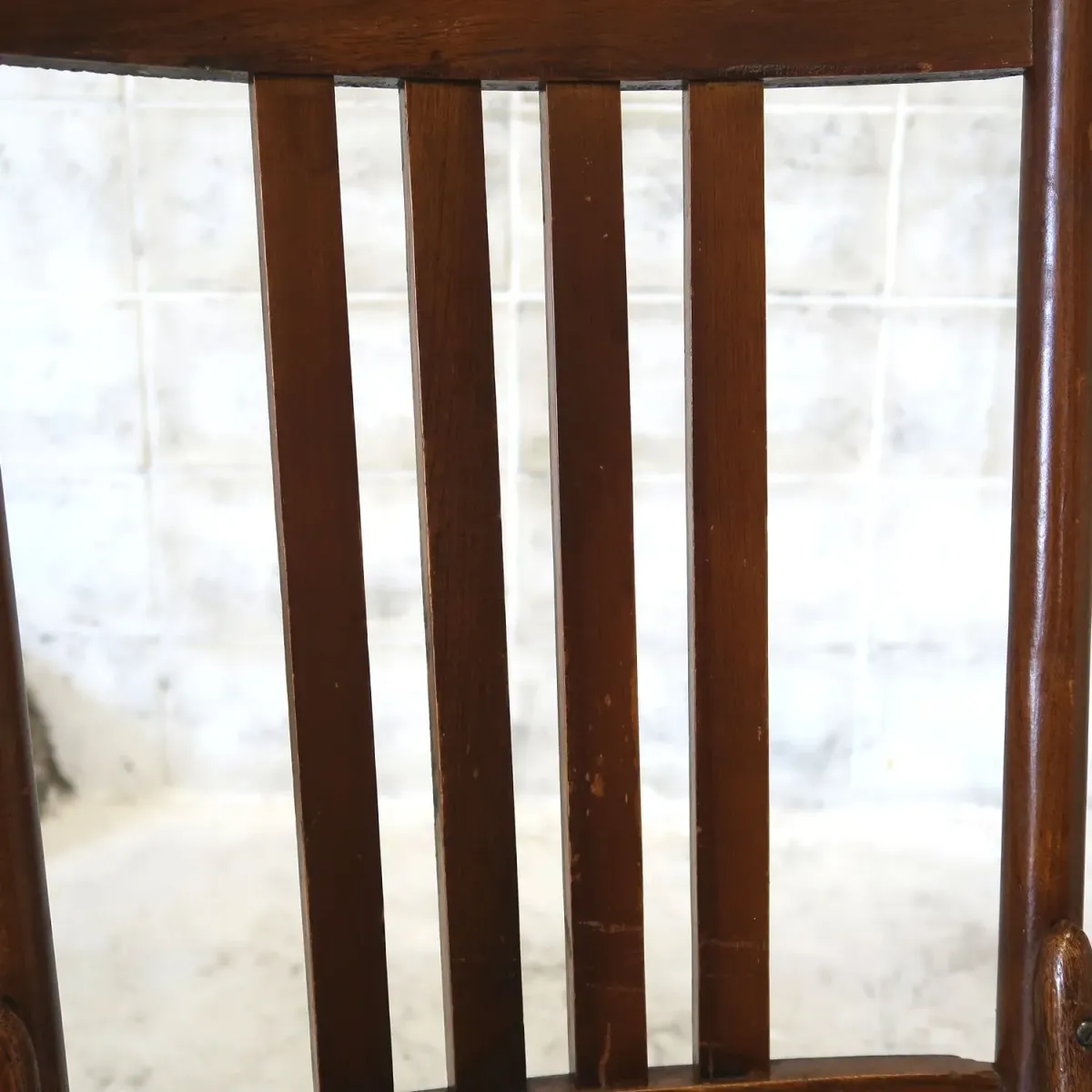 各所のディテール、ウッドの風合いから古さが伝わってきますね。時を経た木目と使い込まれた味わいある表情が魅力的。 アンティークならではの存在感と貫禄、そこにあるだけで絵になるチェアです。