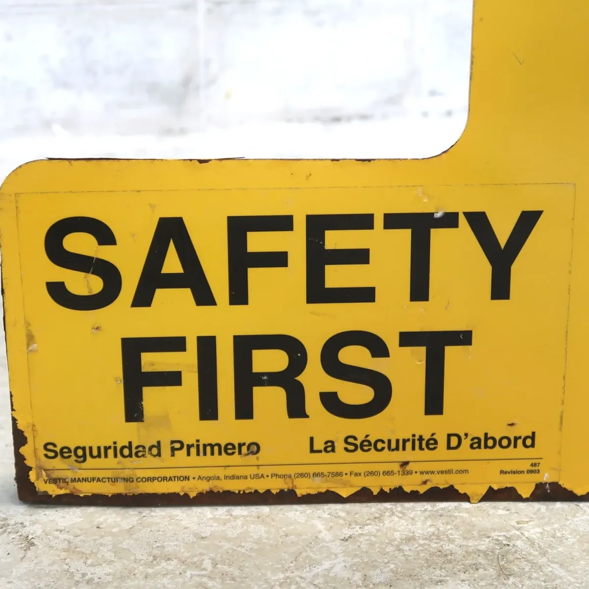 目を引くイエローベースにブラックレター、正にアメリカンな派手さと無骨さを感じるデザインがストレートにカッコ良いですね。 重厚なメタル製でズッシリを重みがあります。 実際に使われてきた物ならではのヤレ具合、リアルな風合いも魅力的ですね。 固定用の穴が隅3点にあります。