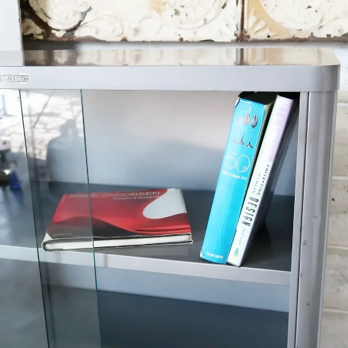 棚板の位置は自由に移動可能。 本棚として使うのはもちろん、コレクションを並べたり、SHOPのショーケースとしてもオススメ。食器棚にしたり、ガラスを外してオープンシェルフにするのも良いですね。