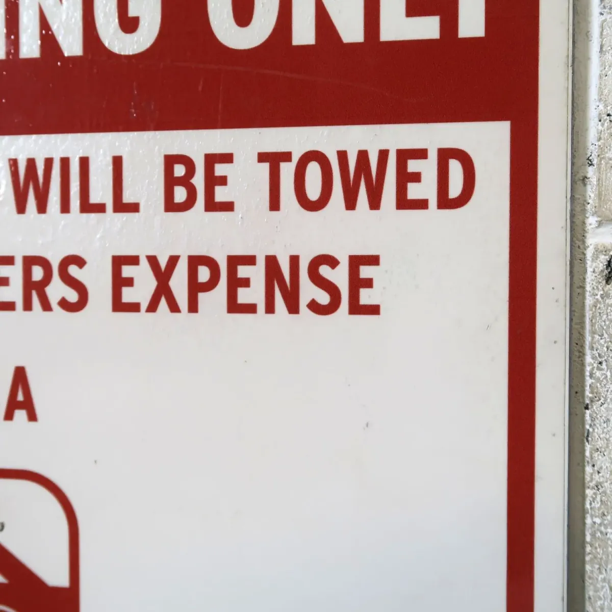 来訪者専用の駐車場であることを示した看板。 ホワイトベースにレッドのレタリングが効いたCOOLなデザイン。シンプルながらしっかりとアメリカらしさを感じる雰囲気が良いですね。 レッカー移動のPOPでわかりやすいイラストもGOOD。適度なヤレ具合もカッコ良く、世界に一つの存在感が魅力的です。