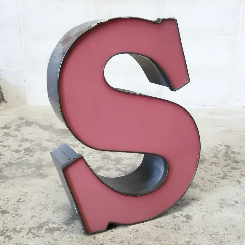 元は照明具が入っていたチャンネルサインで、その為に深さがある作りとなっています。 電球をいくつか仕込んで光らせるのもオススメです。