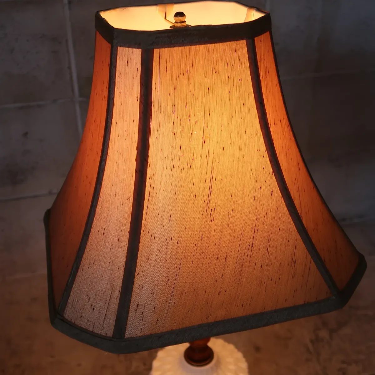 格子の凹凸模様が可愛らしいミルクガラスとウッドベースの組み合わせ。 ぼってりとしたガラスフォルムに凹凸がとても細かくデザインされた緻密な作り、温かみのあるウッドとの引き締まった融合は独特の美しさ、高級感がありますね。 上品な雰囲気とOLDな存在感、綺麗なホワイトカラーが空間の良いアクセントとなってくれるでしょう。