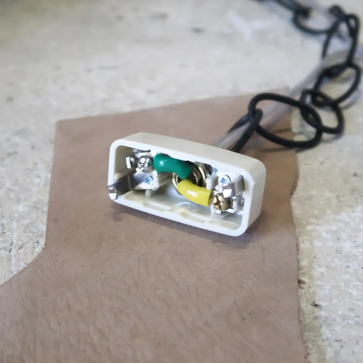 配線はリペアされています。電球はE-26口径、日本で一般的なサイズです。LED等のeco電球もご使用頂けます。チェーンの長さは88cm程、短く調節もできますのでお問い合わせ下さい。延長の場合は別途、追加料金が発生致します。シーリングソケットに交換していますので、そのまま天井に取り付け可能。 電球は付属しません。