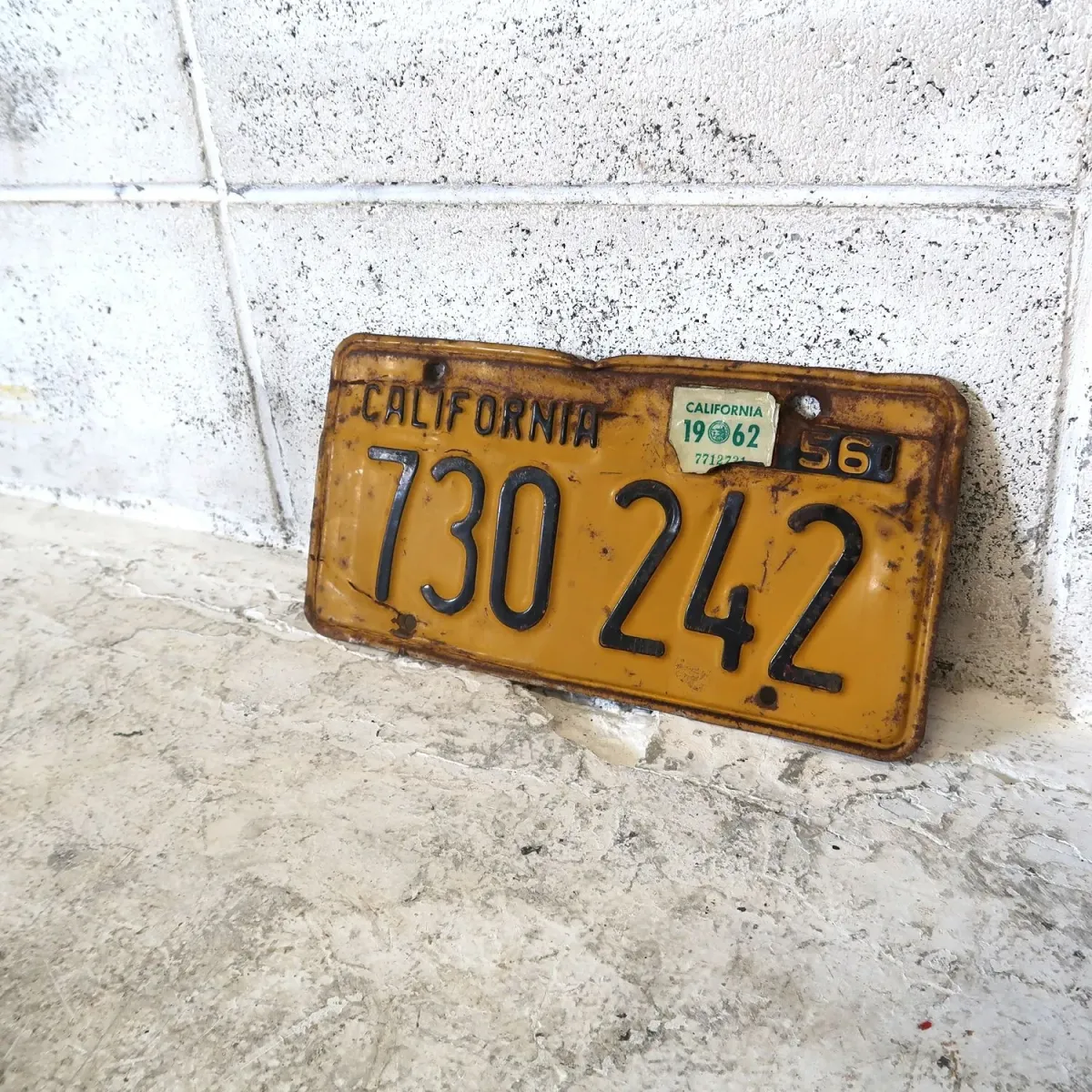 実際に使用されていたレアなカリフォルニア州ナンバープレート。中でもこちらは年代の古いスペシャルです。 Black&YellowのOLDなデザインが最高にCOOL。キズや擦れ、シャビーな風合いがリアルで本物だけの空気を感じさせてくれます。 そこにあるだけでアメリカを感じさせるGOODアイテムです。