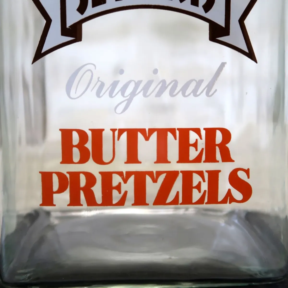 シンプルながらもインパクトのあるロゴデザインがアメリカらしくて良いですね。元はプレッツェルが入っていたようです。 厚みのあるしっかりしたガラスでずっしりと重みがあります。