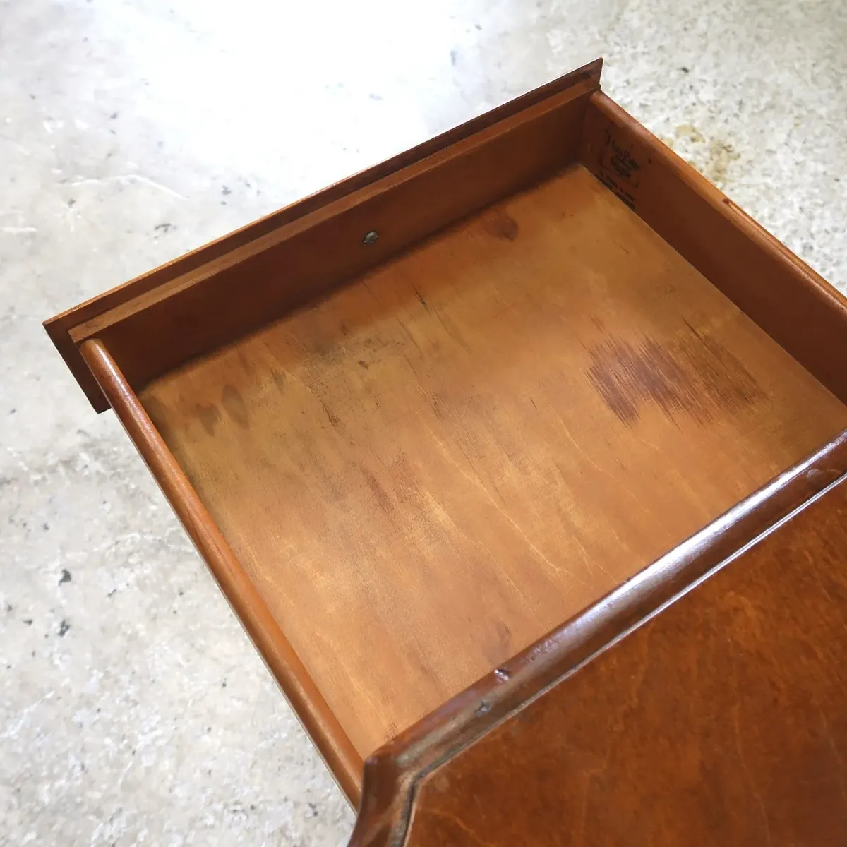 メープル無垢材を贅沢に使った歴史を感じる雰囲気と重厚な存在感、アンティークならではの味のある世界観にグッと惹かれます。各所細部の作り込みに拘りを感じますが、特に太めのポールや脚周りの造形がCOOLですね。アンティークならではの時を経たウッドの温かみある風合いも魅力的。 引き出しの収納部の容量もしっかりとあり、実用的なのも嬉しいポイントですね。