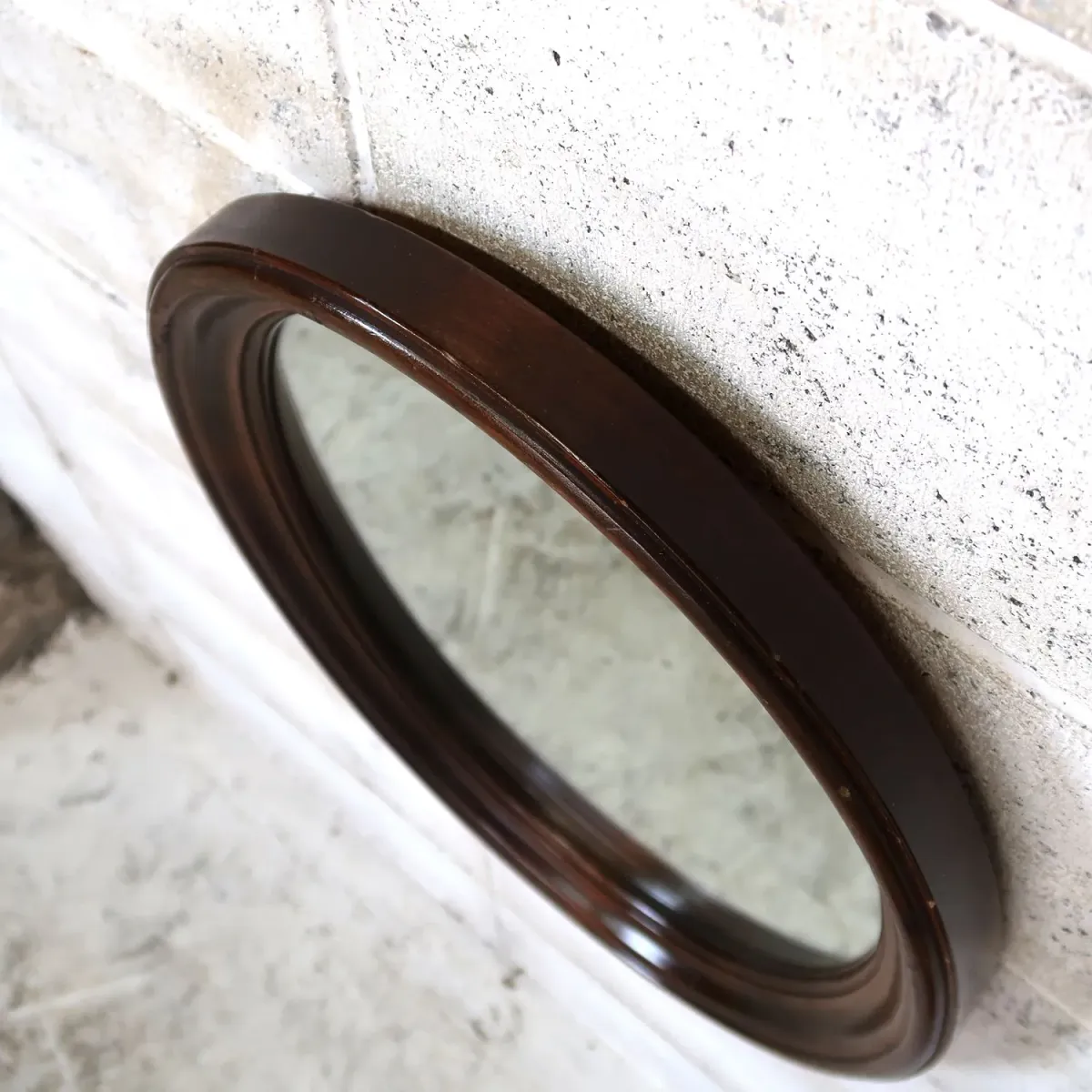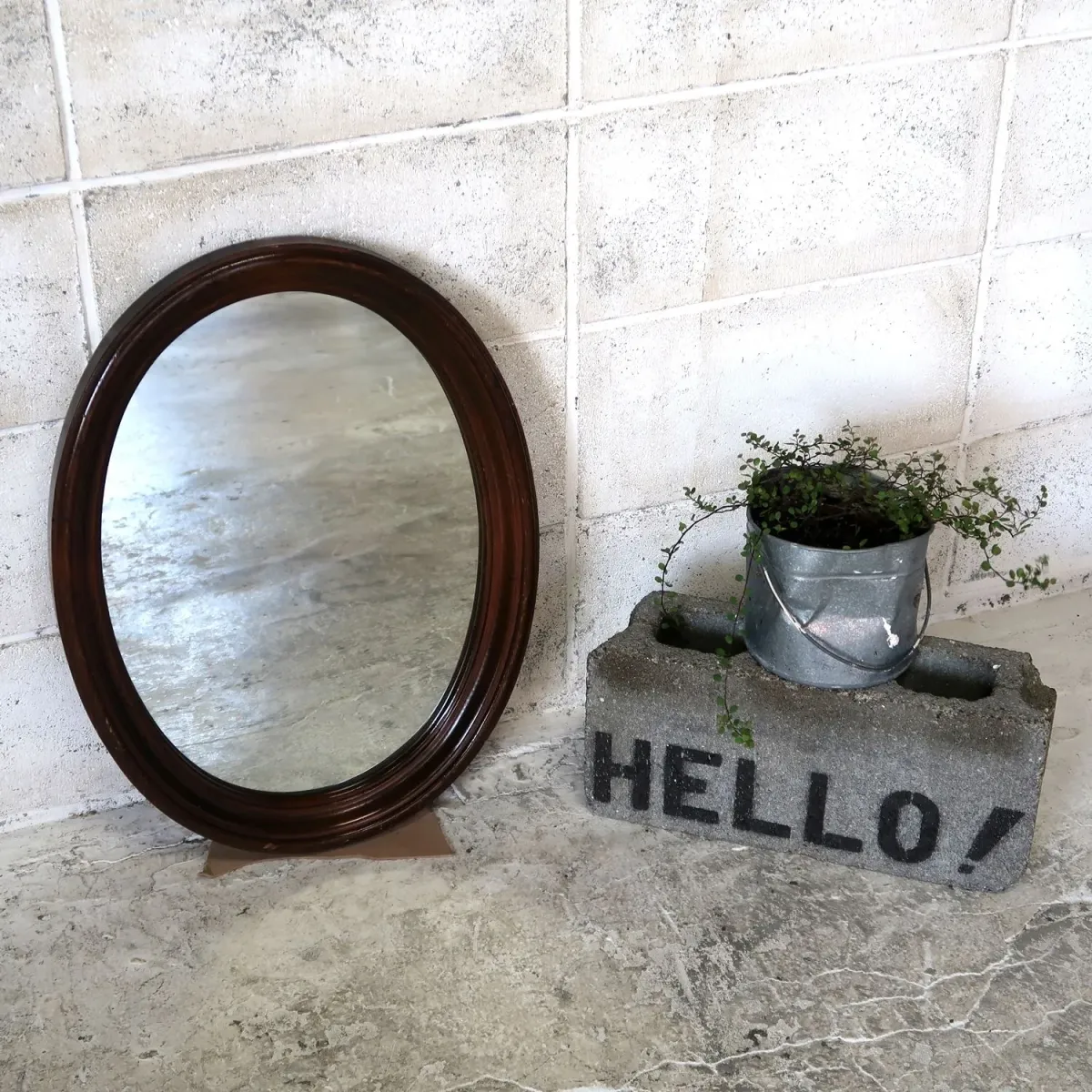 人気のオーバル型、身の詰まったウッドの重厚さやダークなカラー、目を引く綺麗な木目と経年の風合いがGOOD。 背面に壁掛け用のワイヤーがあるので簡単に設置可能。