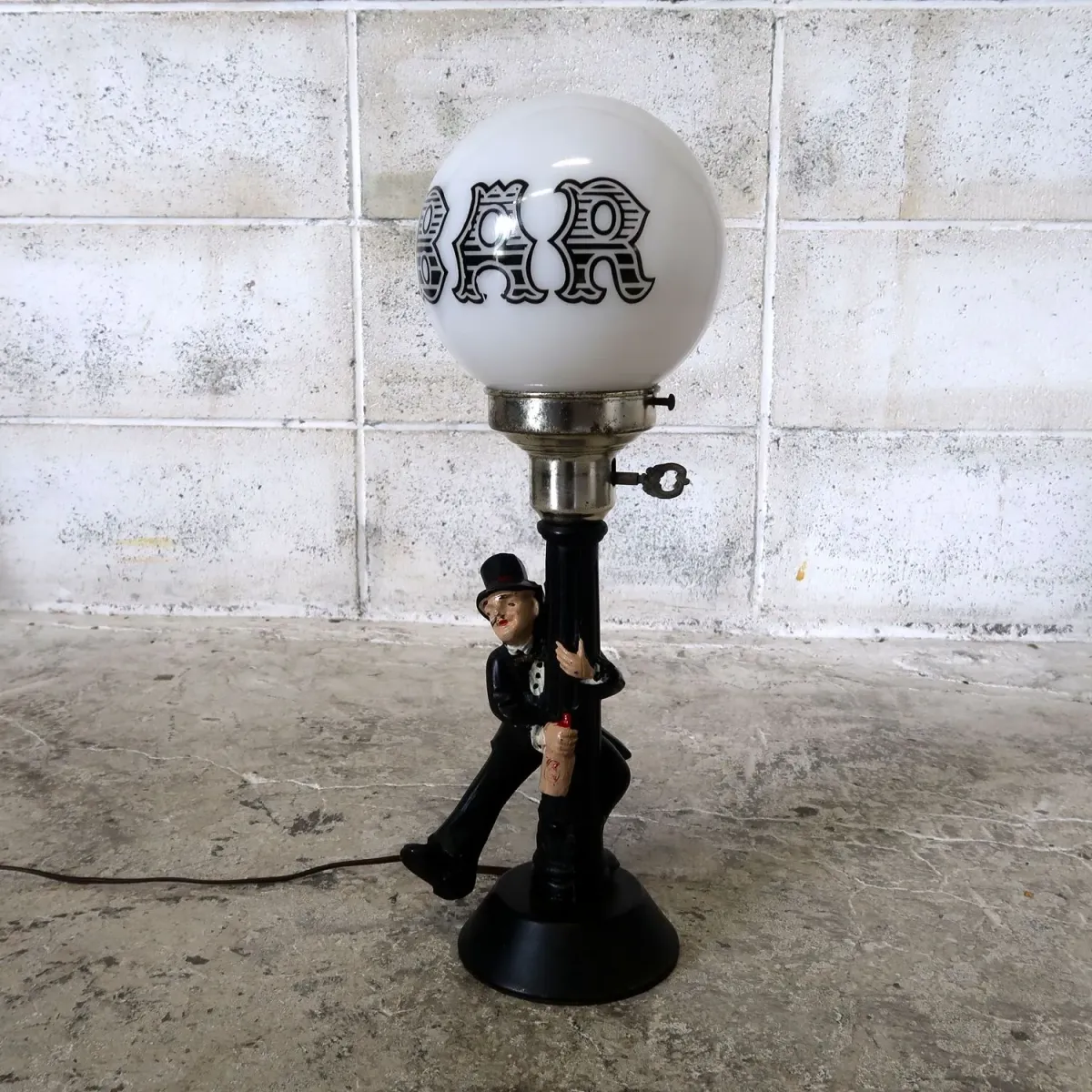 バーランプも様々なタイプがありますが、こちらは酔っ払いの紳士と外灯をモチーフとしたアメリカでも古くから定番人気のデザイン。