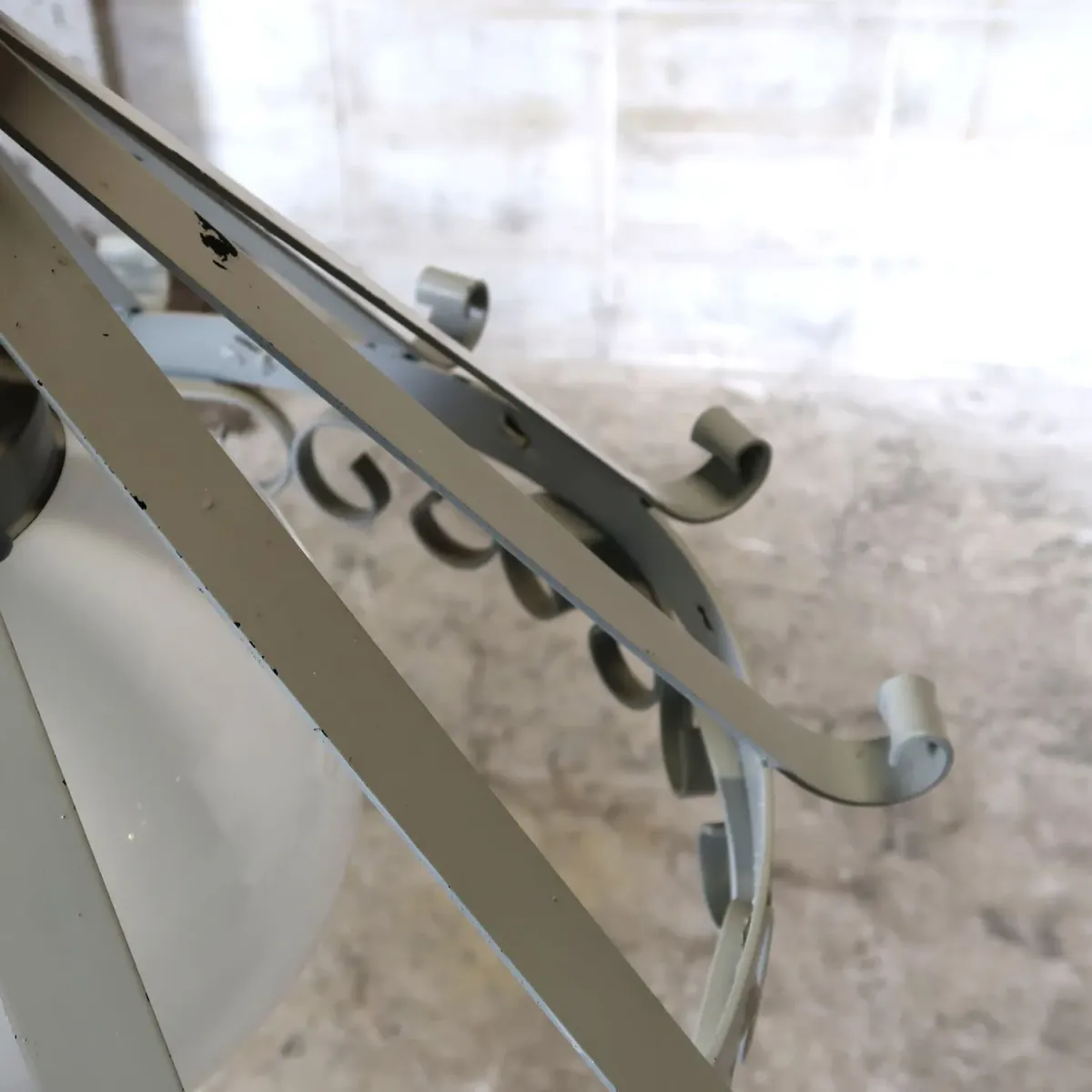 メタル×真ん丸ミルクガラスのシェード、落ち着きのあるメタルのカラー&ガラスのコントラストがシャビーな良い雰囲気。各所メタルの曲げ装飾も可愛らしく、良いアクセントになっていますね。 灯りを点けるとフレームの造形が強調され、ムードある空間を演出してくれます。 サイズも大き目で存在感抜群、昼間もインテリアの1つとして楽しめますよ。