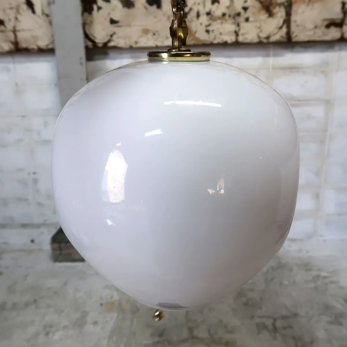 艶のある質感のミルクガラスがとても優しく温かい雰囲気。古き良きOLDアメリカを感じる、希少で拘った両面が凹んだガラスフォルムのデザインが目を引きます。