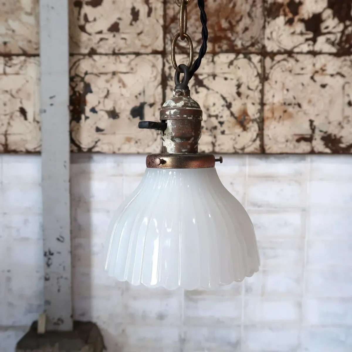 アンティーク ミルクガラス ペンダントランプ