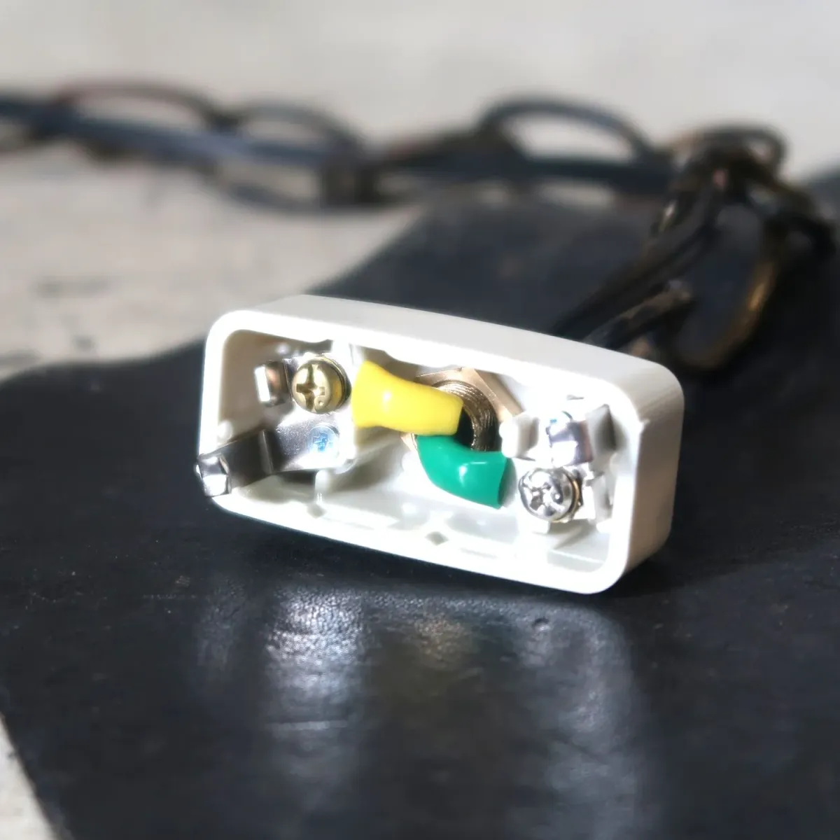 配線はリペア済、電球はE-26口径、日本でも一般的なサイズです。LED等のeco電球もご使用頂けます。チェーンの長さは40cm程、短く調節もできますのでお問い合わせ下さい。延長の場合は別途、追加料金が発生致します。シーリングソケットに交換していますので、そのまま天井に取付可能。ソケット部の回転スイッチでON/OFFが可能。