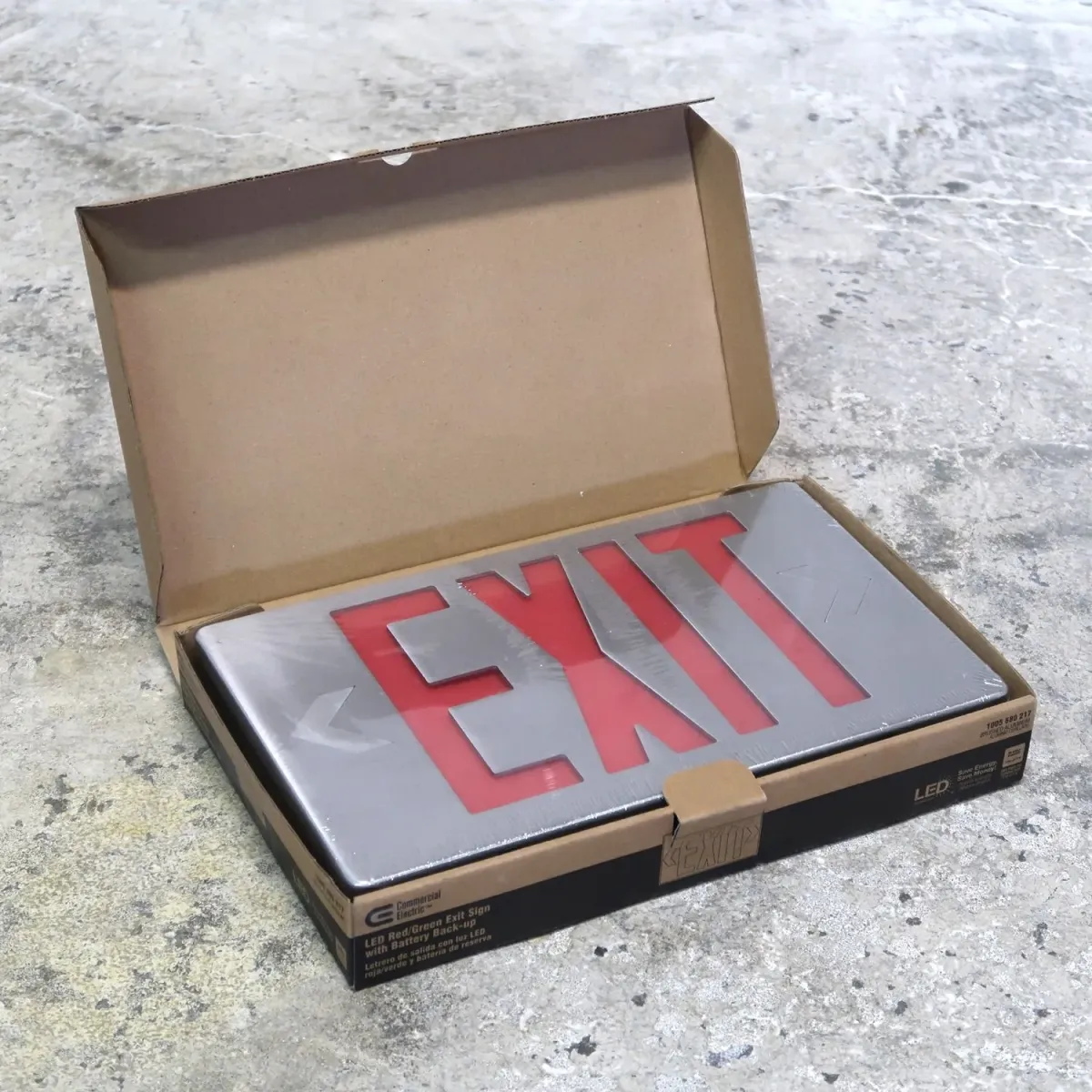 映画でもよく見かける定番アイテム、アメリカンスタンダードなEXIT(非常口)ライトサイン。なかでもレアなブラッシュド加工されたアルミボディタイプです。 重厚感、素材感が際立つボディ表面の質感が最高にCOOLです。 壁付けの片面仕様と、廊下の天井等に付ける両面仕様の2wayタイプ。文字はレッドかグリーンで選べます。 矢印も点灯可能です。