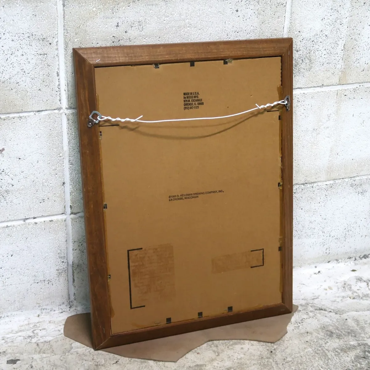 Heileman`s Old Style は、アメリカのウィスコンシン州ラクロスで醸造されるビールです。 経年の味が出たウッドフレームにCOOLなロゴやレタリングが落ち着いた雰囲気。他には無いシチメンチョウのデザイン、目を引く存在感とインパクトがあります。 アルコールメーカーらしい独特のカッコ良さと存在感がありますね。ミラー部分も広めの作りなので、空間の広がりも感じられそうです。