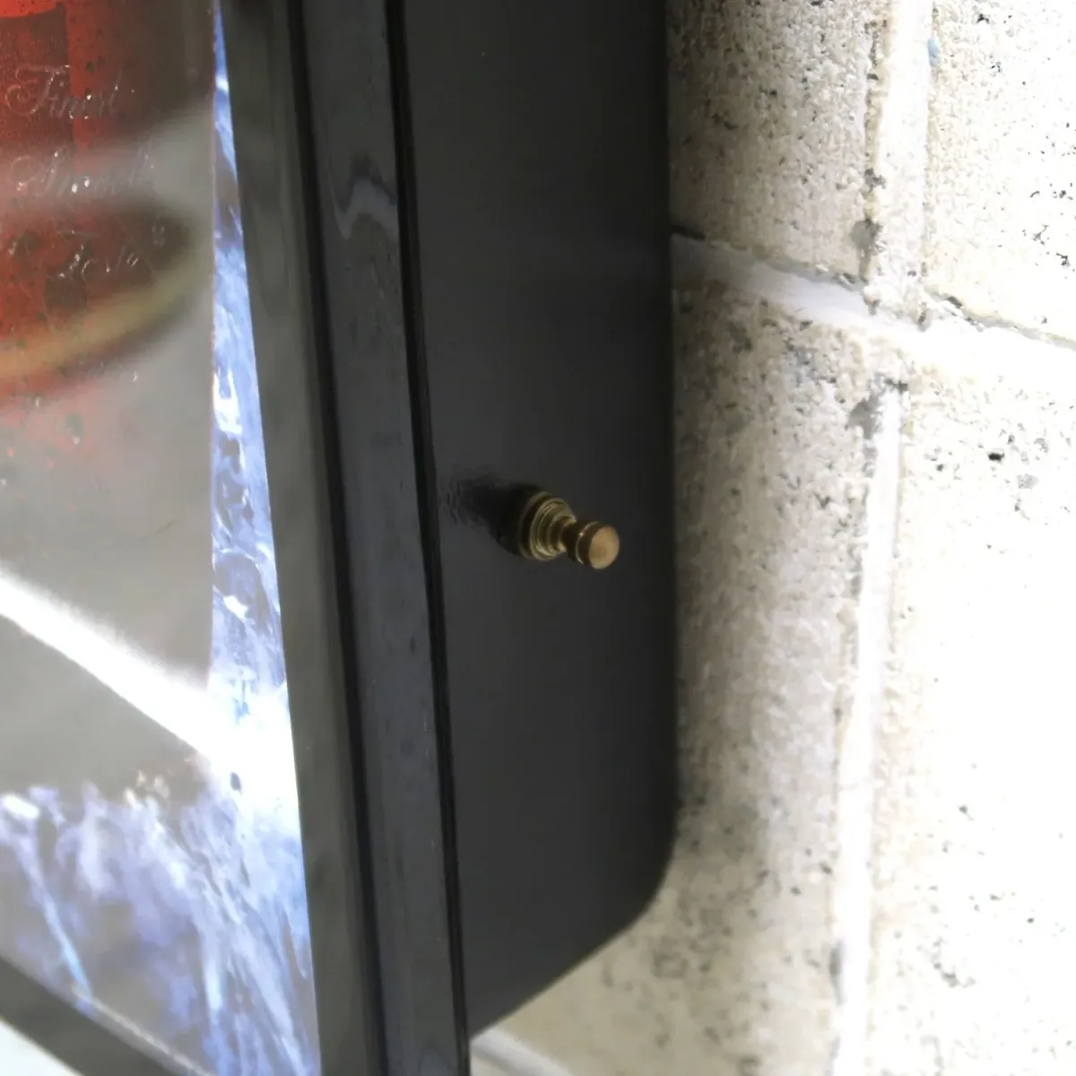 電源はコンセント式、内部には丸形の蛍光管が入ります。日本でも手に入るサイズです。サイドの回転スイッチでON/OFFが可能。丸型蛍光管はそのままお付けしますが、中古品です。背面には壁掛け用の金具が付いています。