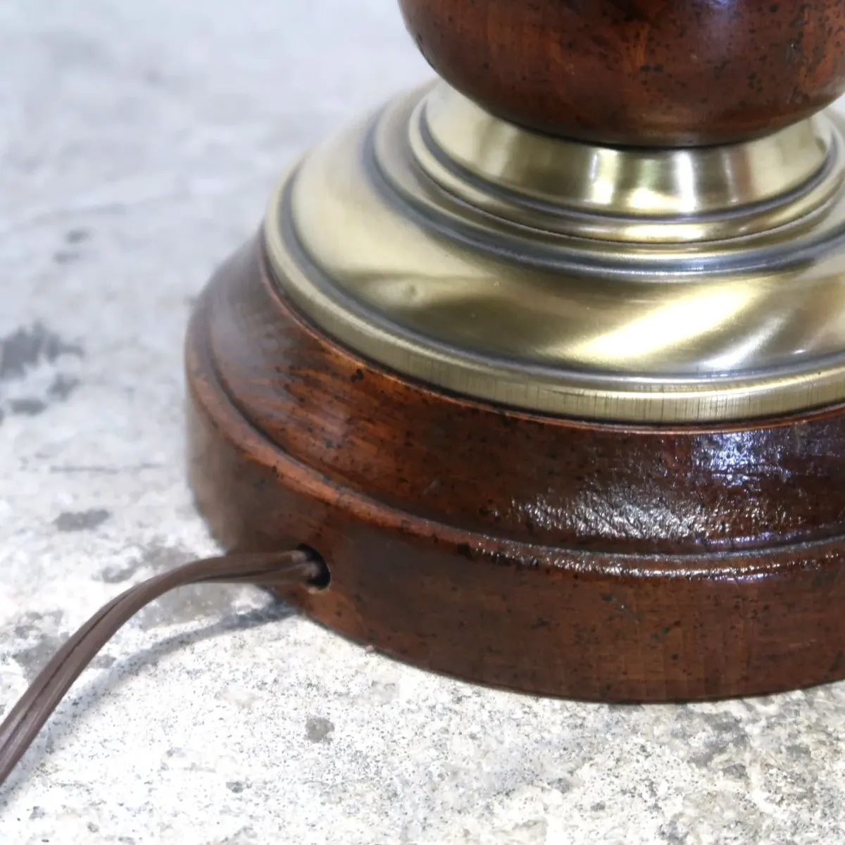 温かみがある自然な木目や鈍く輝くゴールドメタルの組み合わせがとても魅力的です。当時らしい素材感のシェードデザイン、曲線のあるスマートな立ち姿が良い雰囲気。全体のシルエット、ベースとシェードのバランスもGOOD。