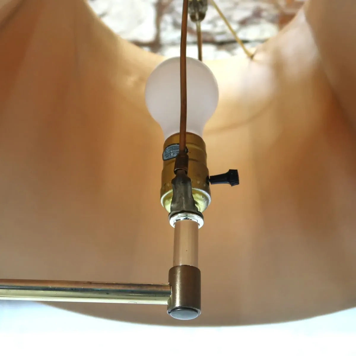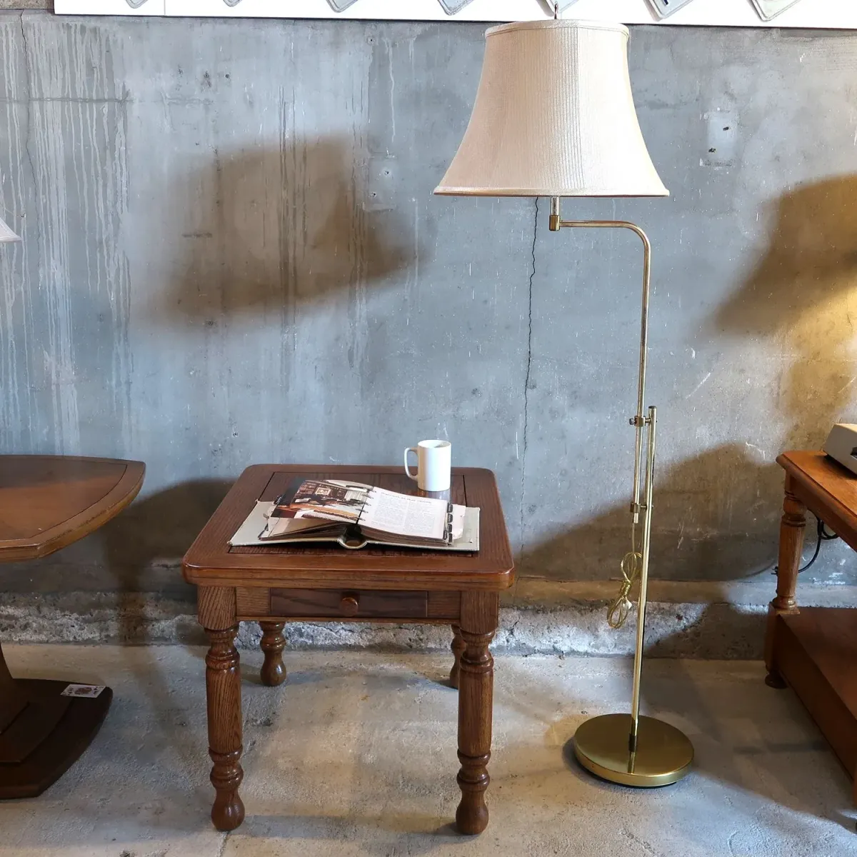 上品でスッキリとしたデザイン、線の細いスマートな立ち姿が目を引きます。 キラリと輝くGOLDメタルがアメリカを感じる良い雰囲気。ポール中央のデザインも良いアクセントになっていてGOODです。シェードデザインも手が込んでいて、OLDな高級感がありますね。 シェードの高さ位置の調節が可能、好みでバランスを調整できるのも面白いですね。
