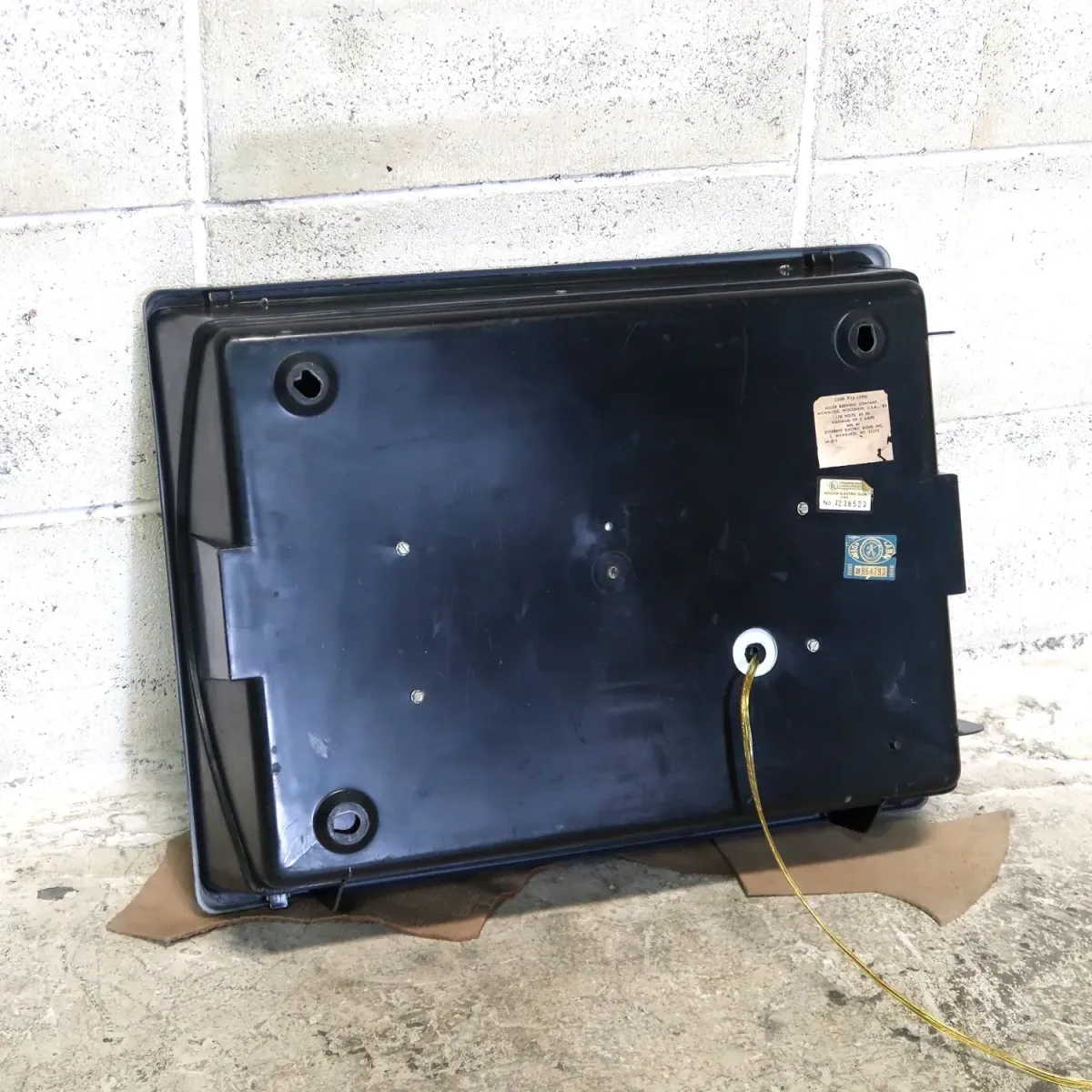 電源はコンセント式、配線はリペアされています。内部には15Wの蛍光管が1本、日本でも一般的に販売されているサイズです。