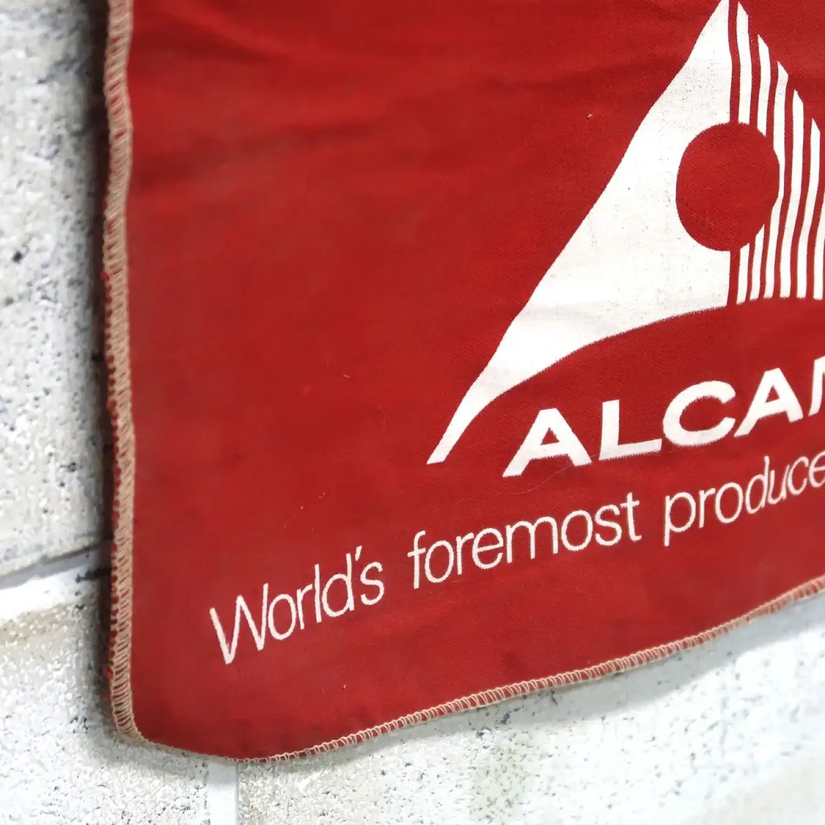 目を引くレッドカラー、企業名が入った古き良きアメリカの空気感、雰囲気が最高にカッコ良いですね。 古い布物は劣化の激しい物が多く、汚れやシワ等はありますが、この年代で程度良く残っている個体はかなりレアで現地でも滅多に出てきません。