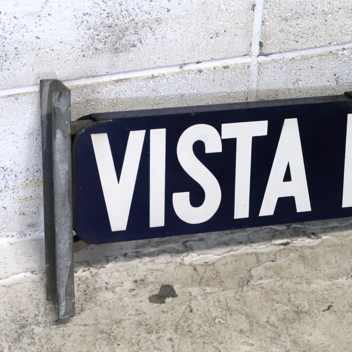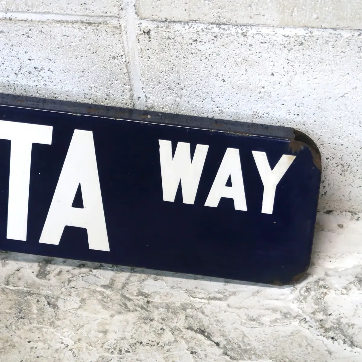 ブルーベースにホワイトレター、シンプルなフォントデザインながら雰囲気と存在感があります。通りの名を表すサインで、実際にアメリカのロードサイドで使われていた物です。両面仕様で壁付け用のベース付きなのも嬉しいポイント。適度なメタルのヤレ具合、実用されてきたリアルな風合いが世界に一つだけの存在感で惹かれますね。