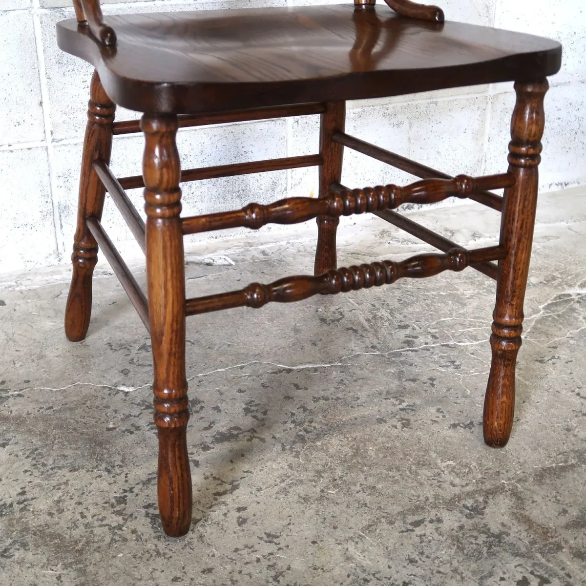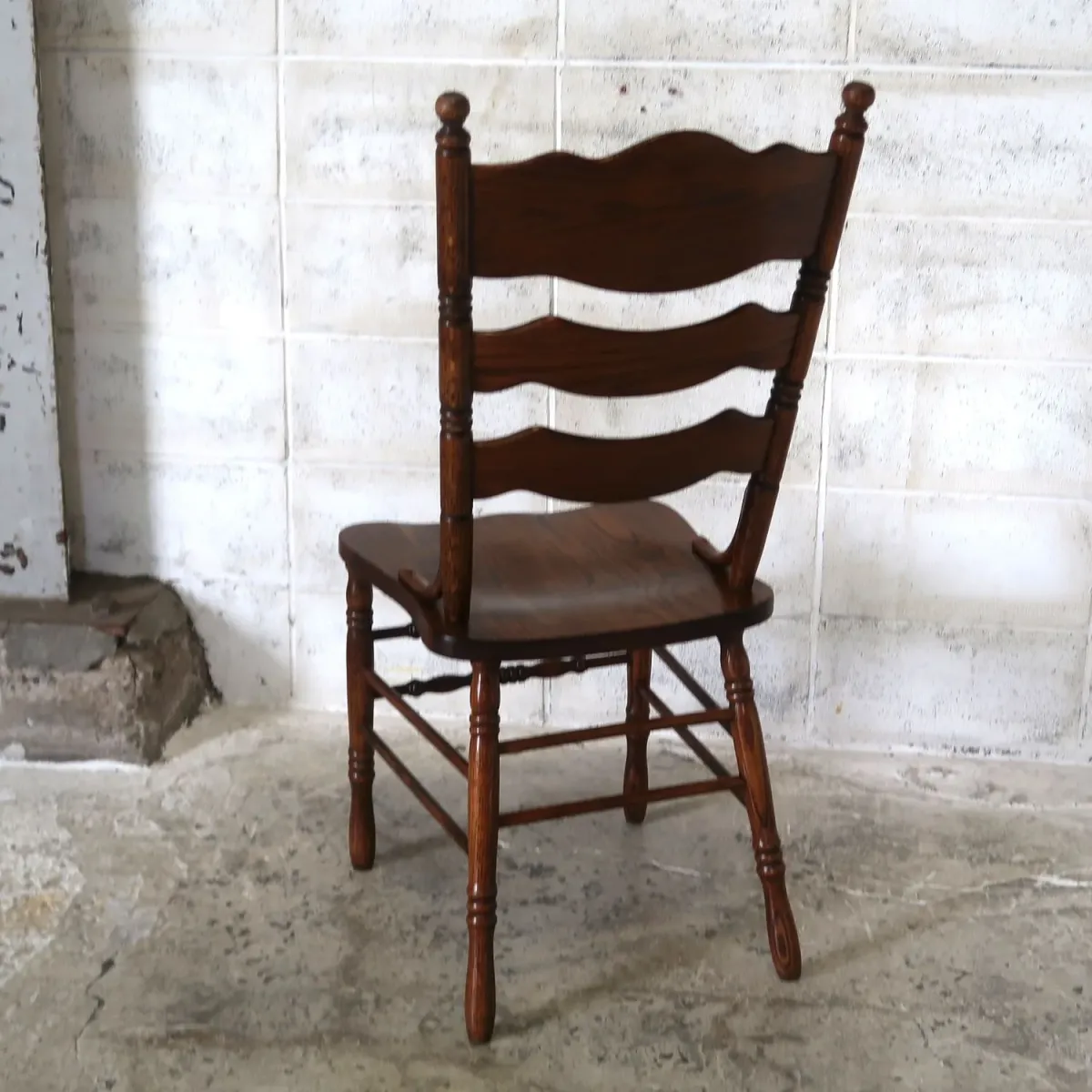 ウッドの丁寧な作り、曲線と直線が入り交じったクラシックスタイル。拘ってしっかりと作られているのが分かります。 オーク特有の美しい木目と目を引く背もたれのラダーバックデザイン、そこにあるだけで絵になるアンティークならではの存在感と貫禄があるチェアです。 シンプルで抜けの多いデザインは圧迫感無く配置できるでしょう、