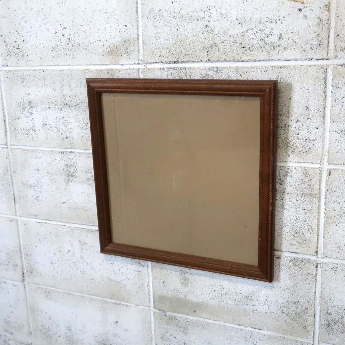 フレームの開口サイズは370×370mm程。 背面に壁掛け用の金具が付いています。